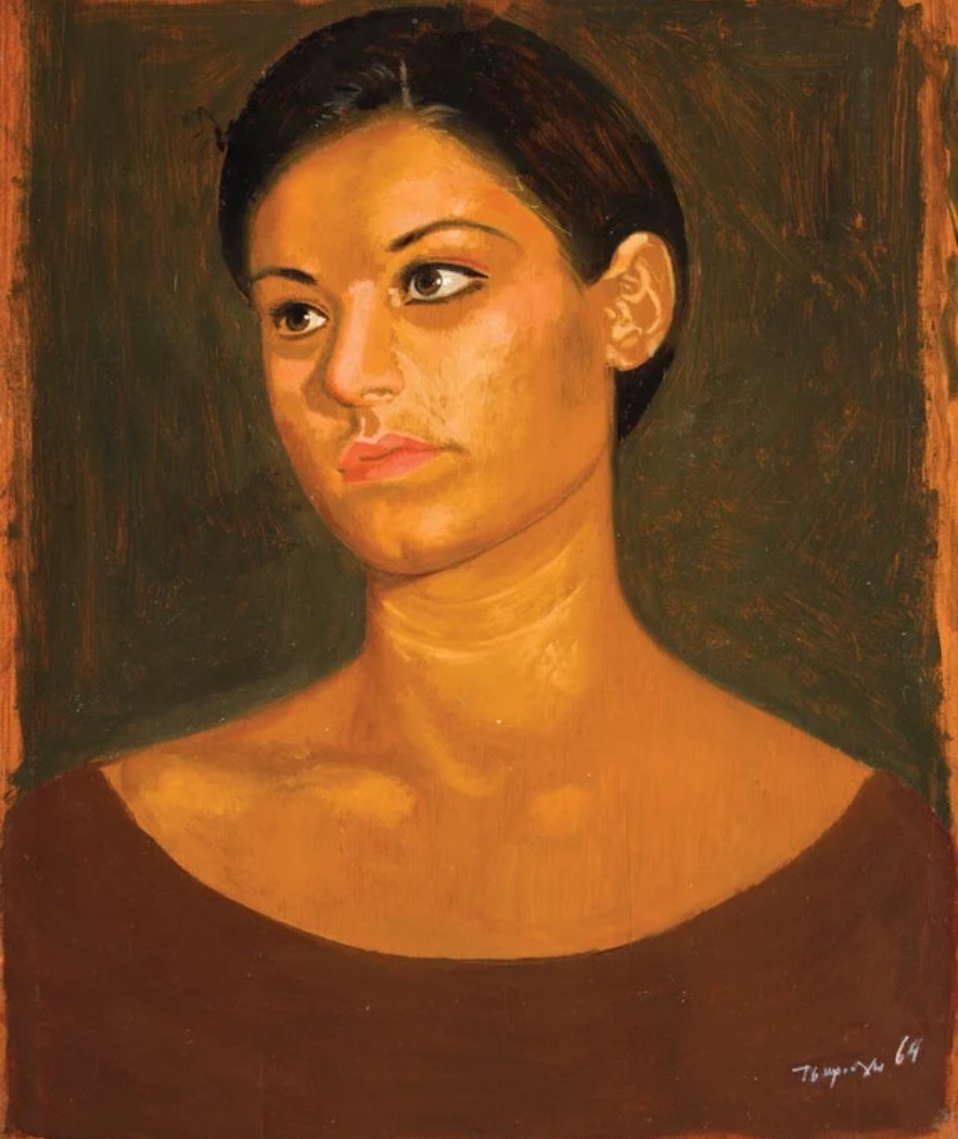 - Γιάννης Τσαρούχης (1910-1989), «Νεαρό κορίτσι», 1964. Αυγοτέμπερα σε ξύλο, 45,5 × 37 εκ. Συλλογή Ευάγγελου και Κατίγκως Αγγελάκου